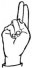 На ћирилици написано ЈАБУКА ПЕРЧЕВИЋ састоји се из 14 слова [?]. Исписано ћириличном једноручном азбуком за глувонеме: